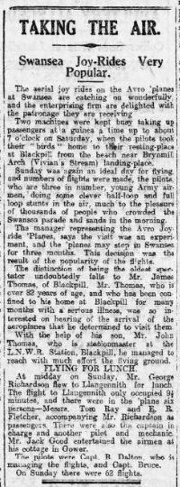 South Wales Evening Post - 2nd August 1919