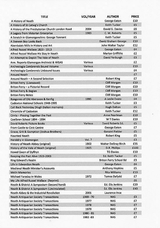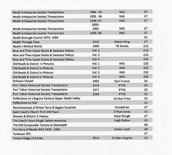 Books may be purchased at the Neath Antiquarian Society headquarters