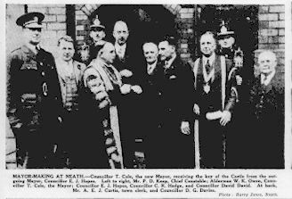 This photograph in the South Wales Evening Post of 10th November 1934 shows the handing of the key from the outgoing Mayor to the new Mayor, Councillor T Cole.