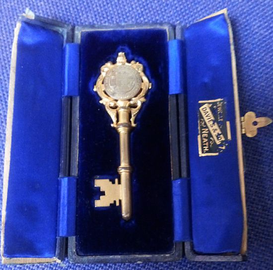 This is a fascinating question, and one for which there is an answer. After contacting Neath Town Council, the Town Clerk was able to confirm that the key existed and was with Neath Town memorabilia. The author being given permission to view the key.